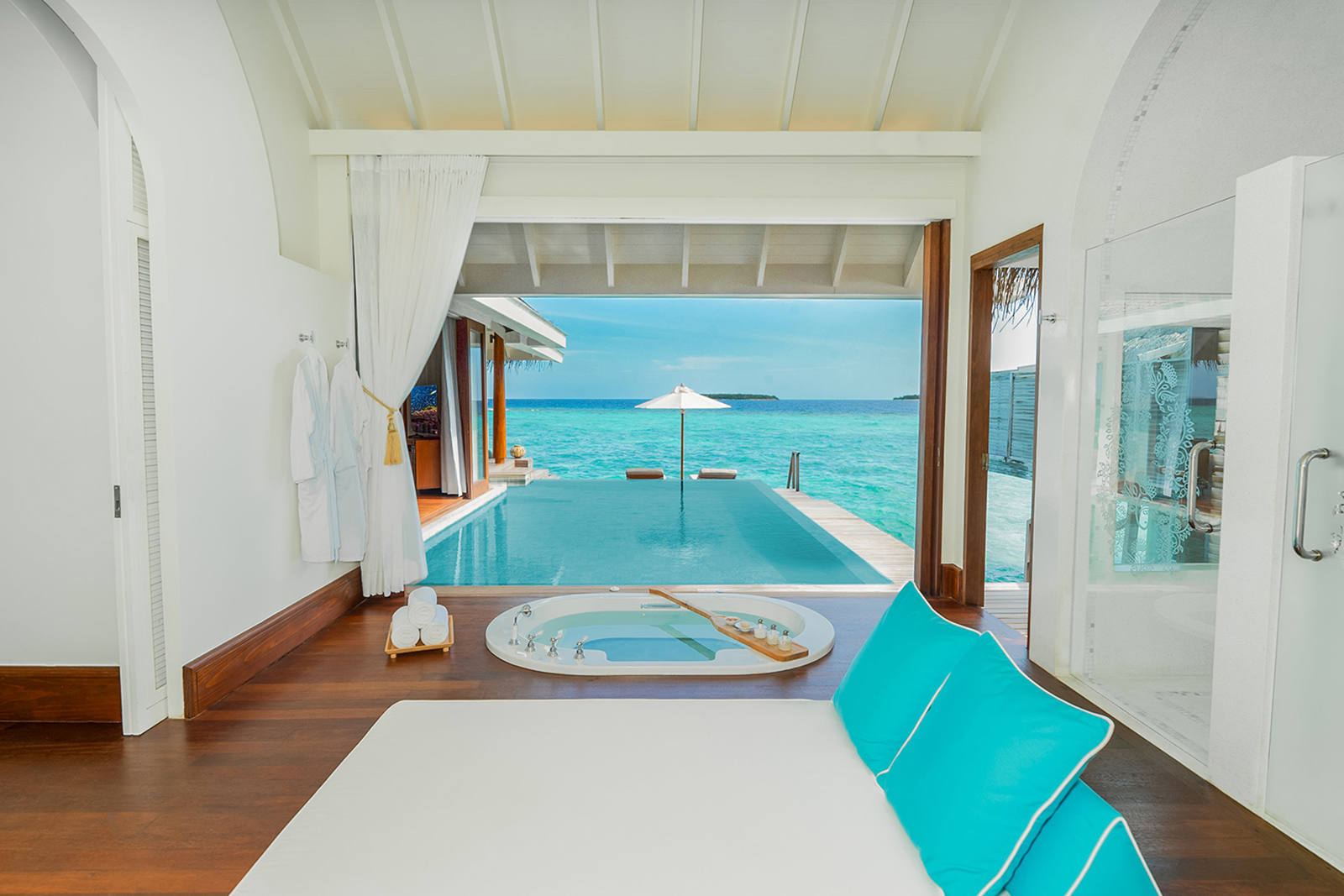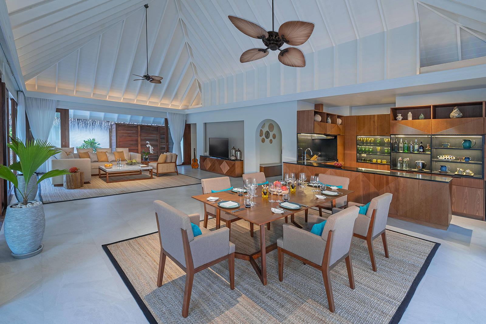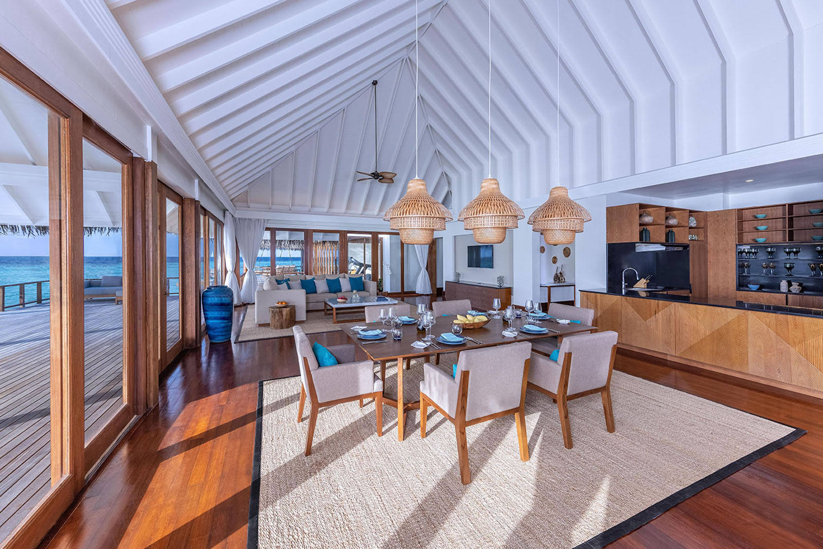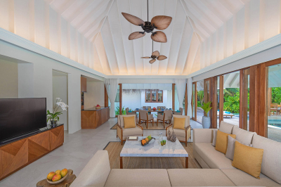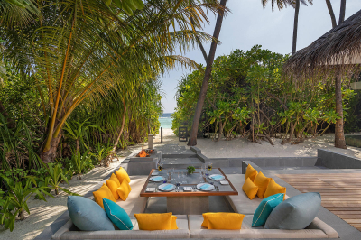 Our In-Villa dining facilities are available throughout the day, choose to dine in your villa or dining pavilion any time you like. Be it breakfast for the family before a day’s excursion or a picnic lunch by the pool, opt for a time that suits you. A selection of favourites is available, and special requests are catered for too. Make a toast, celebrate a meal with friends as you watch the vibrant fish swim by your deck or party with a casual gathering in your private sala.