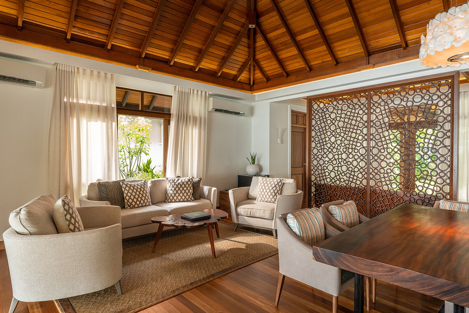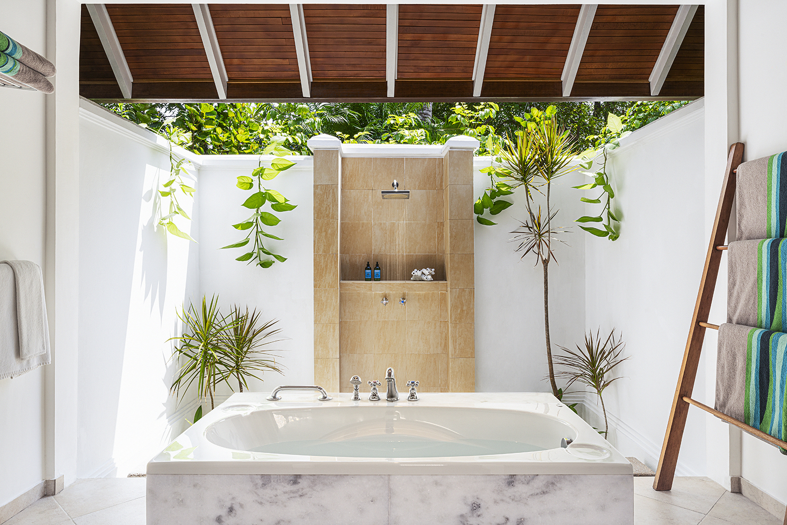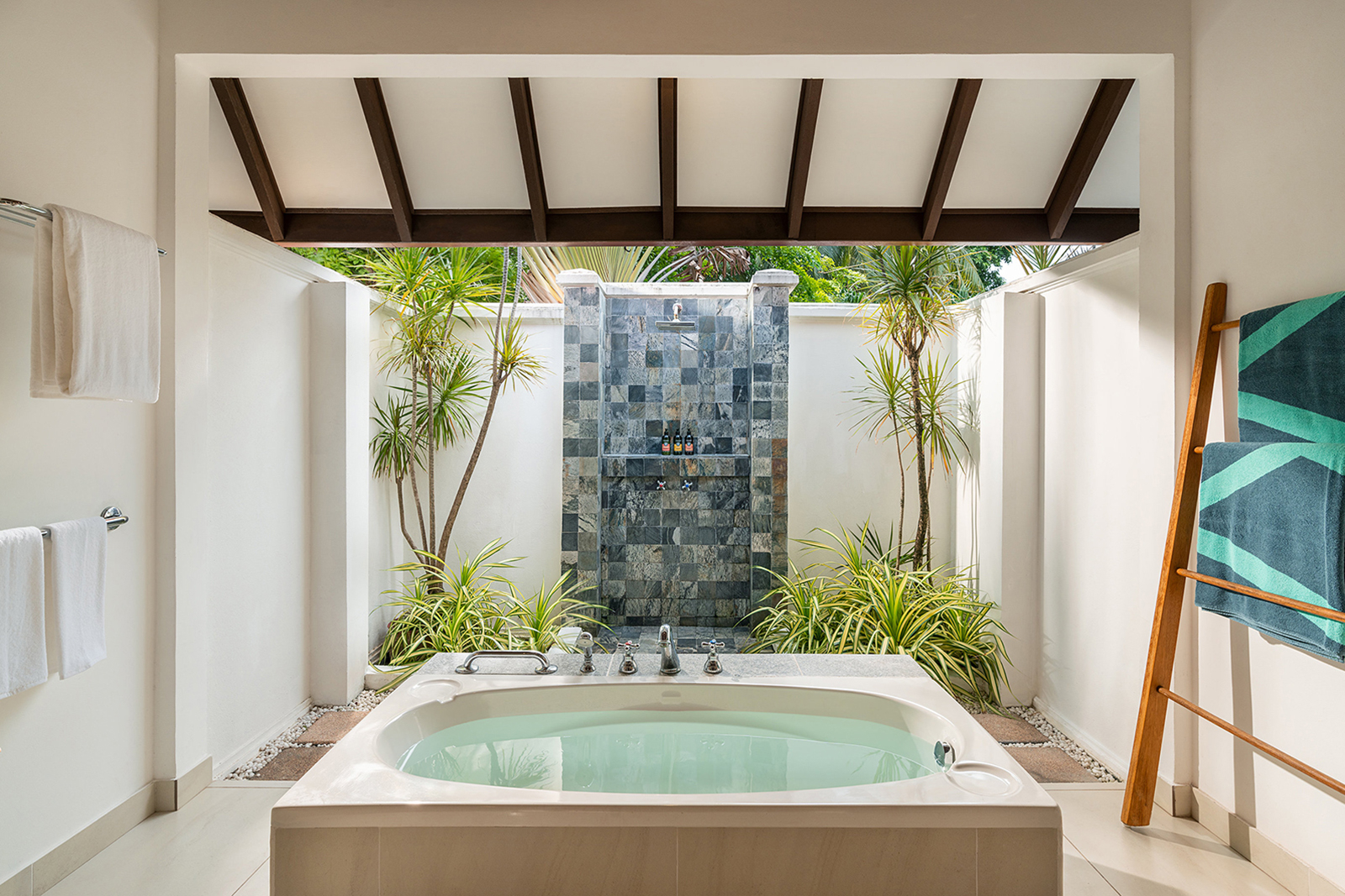 Escape to a shaded verandah, steps from the azure sea. Surrounded by lush greens and blooms, Café is the island’s perfect spot to unwind.