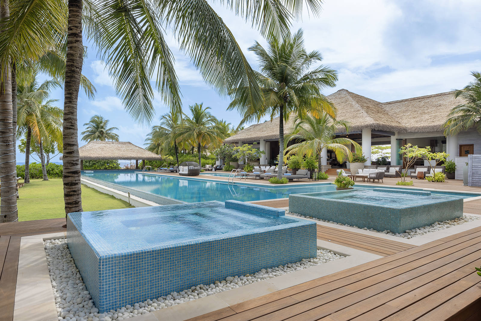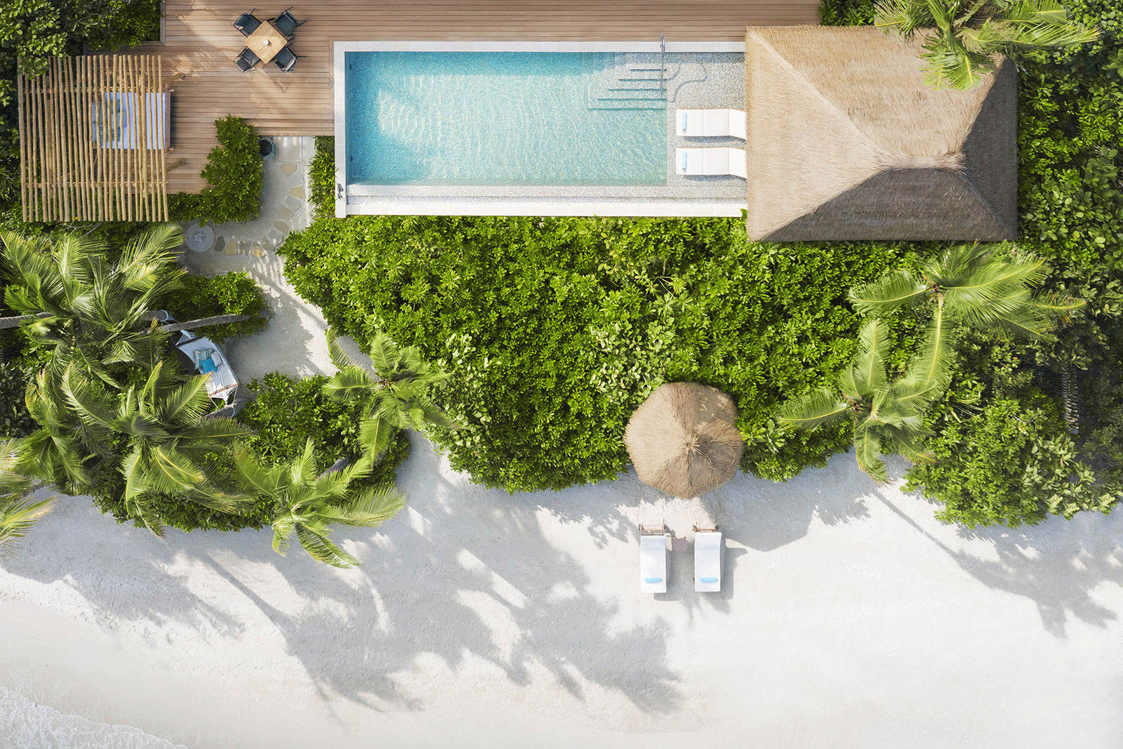 Nestled amidst the greens and cocoon of palm trees are four beautiful cabanas which offer a day in the sun in full seclusion. Our Day Packages offer two glasses of Champagne and Oysters, you could also choose from a specialty Cabana Menu.