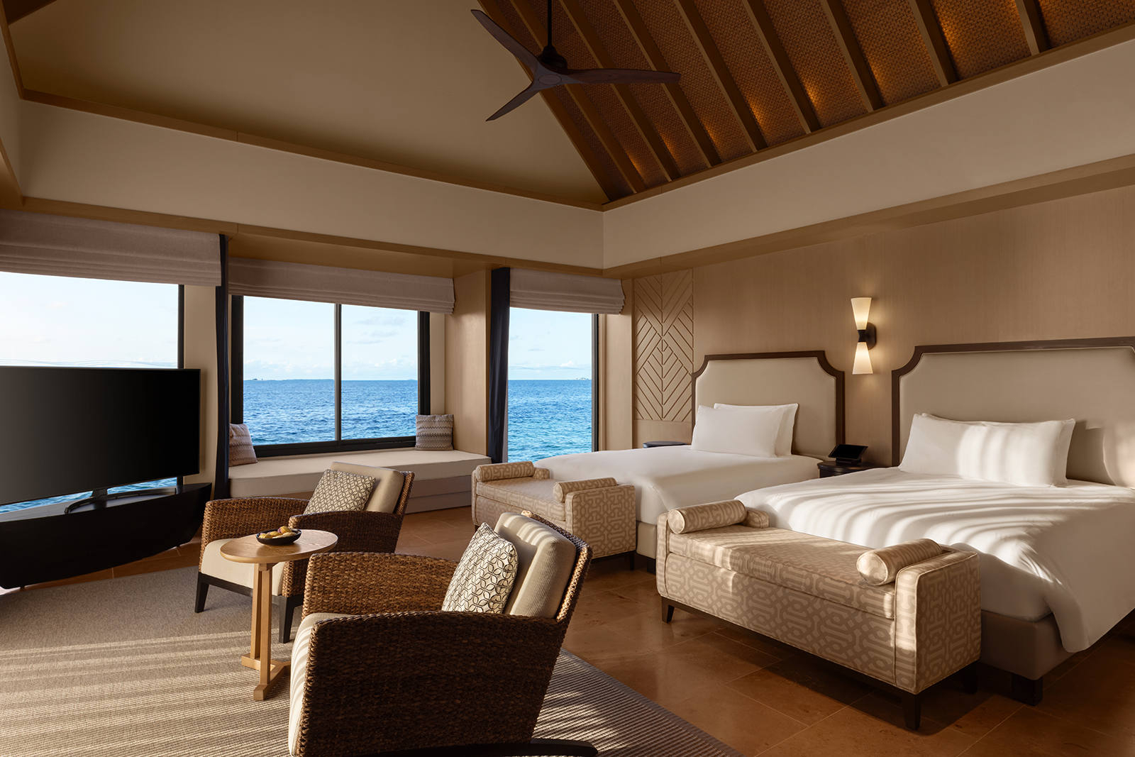 The Burnt Ends’ the Australian favorites, presenting the modern Australian bbq techniques in Maldives at the very relaxing poolside setting, enjoy a relaxing lunch glaring at the scenic views. Head over to Ledge for a dinner date, the restaurant serves grilled meats and delicious delicacies spreading intimate vibes. The bar is open for late night chill outs.